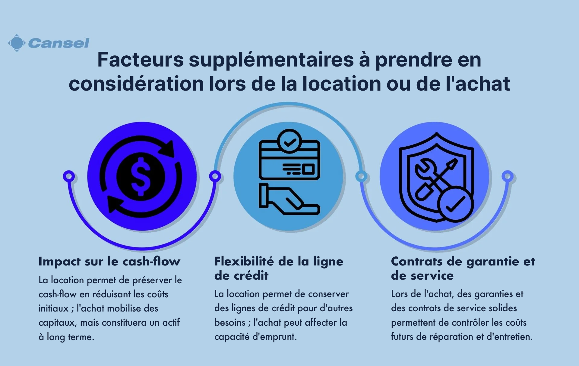 De plus, une bonne compréhension de l'impact sur le cash-flow, les lignes de crédit et la valeur des garanties et des contrats de service vous aidera à prendre une décision éclairée. In fine, pour prendre une décision éclairée, il est indispensable d'analyser minutieusement ces facteurs en fonction de votre contexte opérationnel et financier particulier, afin que la décision de louer ou d'acheter réponde à vos objectifs stratégiques et vous offre le meilleur retour sur investissement.