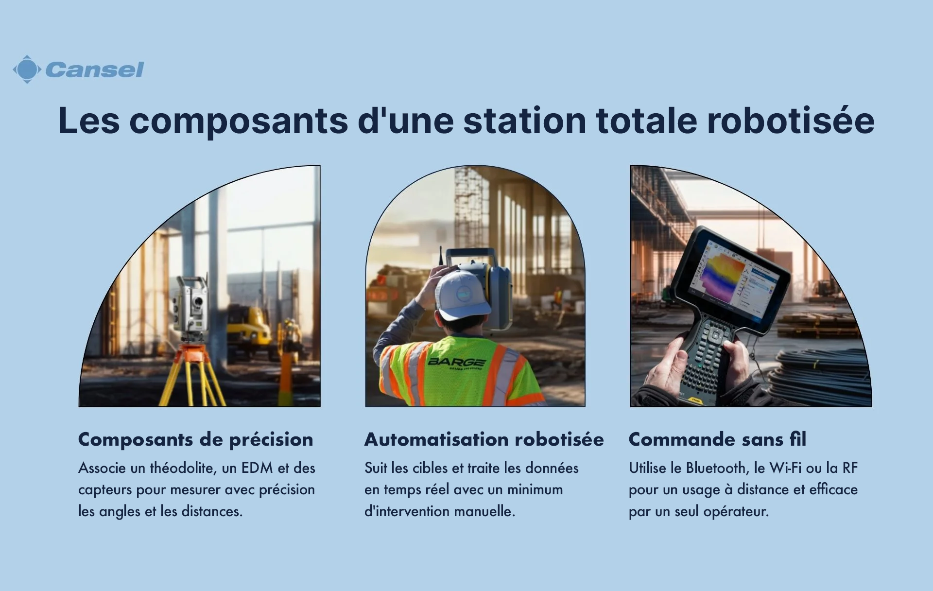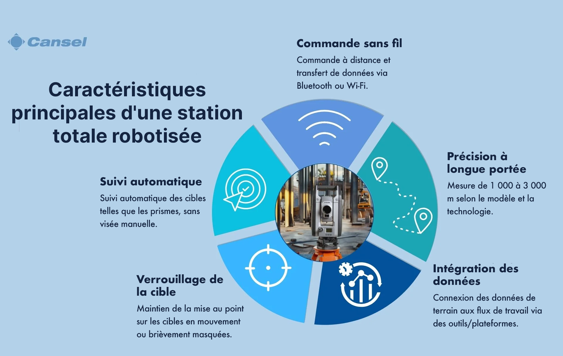 Quelles sont les principales caractéristiques d'une station totale robotisée ?
