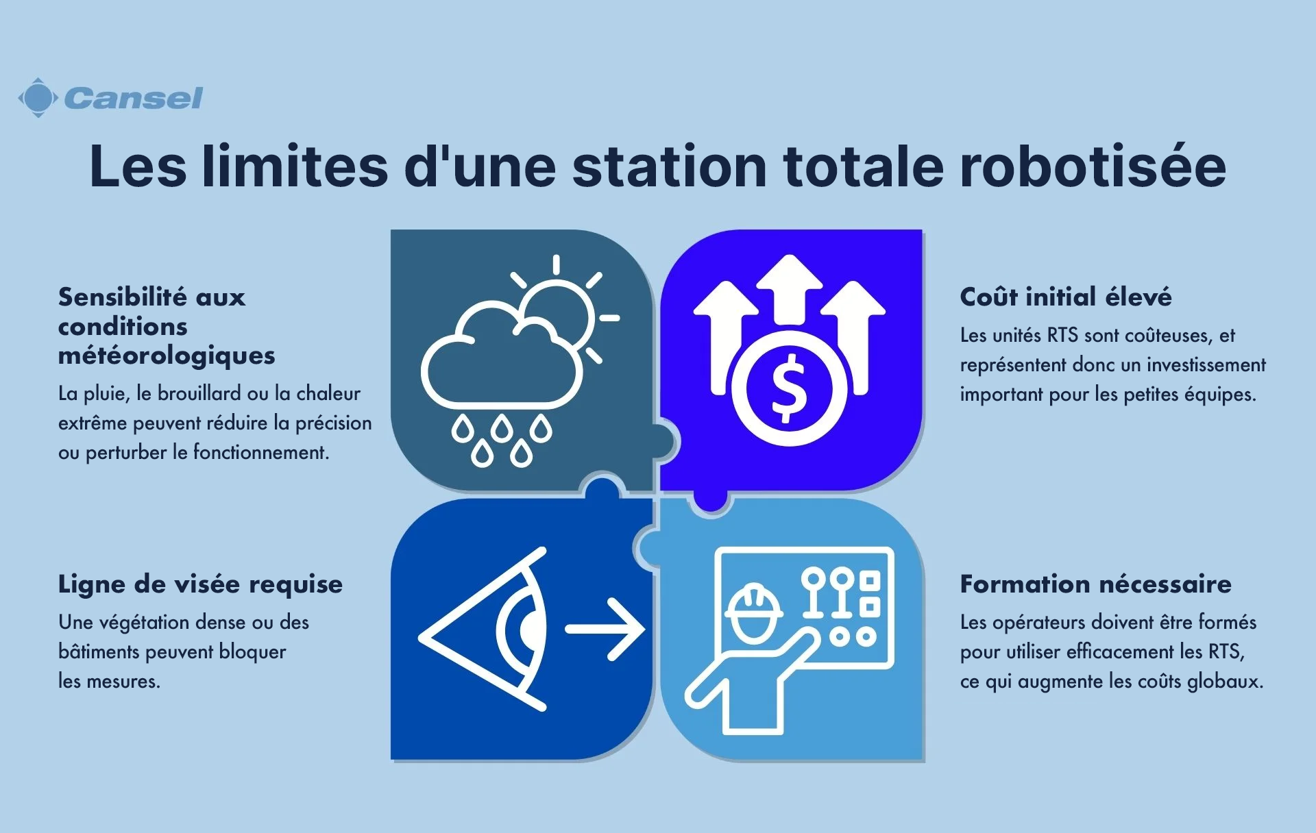Quelles sont les limites de l'utilisation d'une station totale robotisée ?