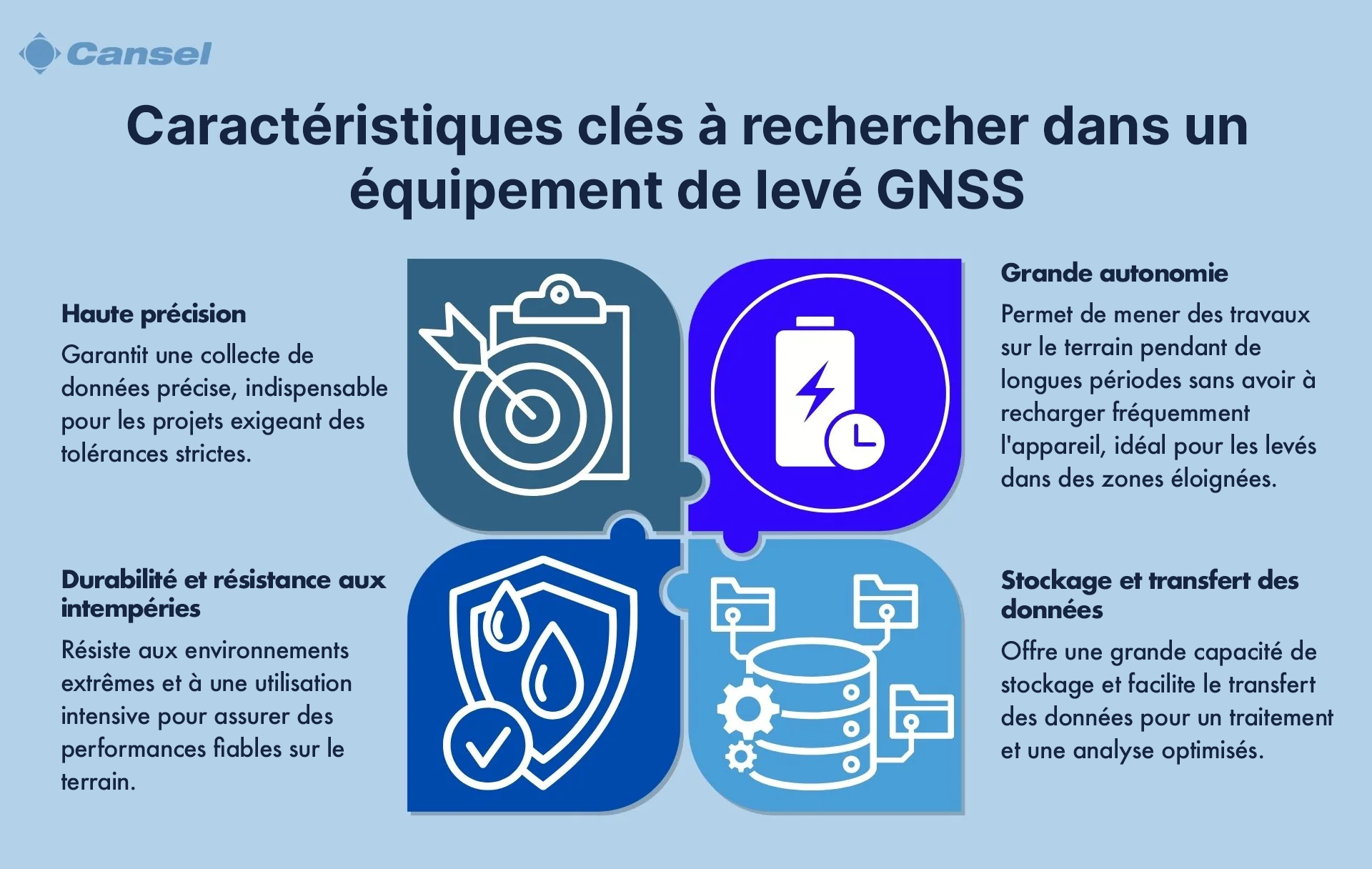 Ces caractéristiques sont indissociables de la fonctionnalité et de l'efficacité des équipements de levés GNSS. Voyons plus en détail leur impact sur vos levés.