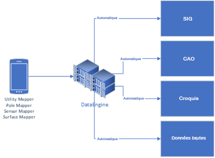 Capturez vos infrastructures souterraines (conduites de gaz, eau, fibre enterrée et bien plus), au niveau du sol (poteaux, voûtes, regards, vannes et autres) et aériennes (câbles électriques, transformateurs, interrupteurs, etc.) au sein d’une seule famille d’applications, et visualisez immédiatement ces informations dans vos :